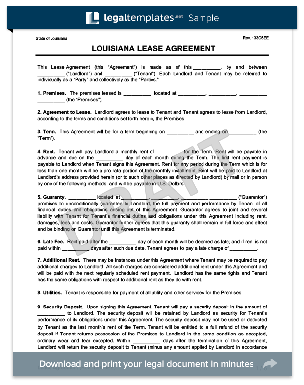 Printable Lease Agreement Louisiana